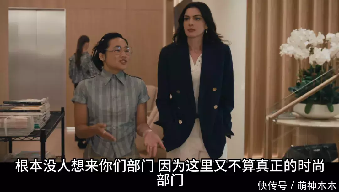 刻板刻画本就让人觉得难以接受,丑化亚裔形象就更让人忍无可忍了。影片中的秦舟在介绍自己履历的时候面部表情十分丰富,她一边说话,一边将自己的眉毛高高挑起,看上去格外愚蠢,她就这样在一部时尚类型的影片中担当搞笑的“丑角”。