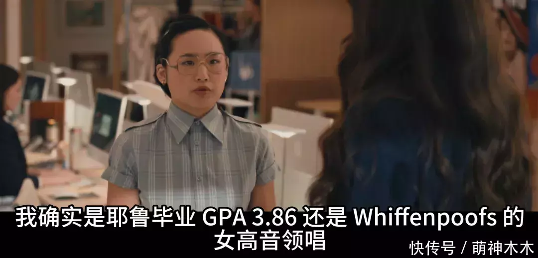 之后,秦舟更是进行了一段低情商发言,用实际行动将“书呆子”的刻板印象刻画地入木三分。她先是当着上司的面直接说“根本没人想来你们部门”,指责这个部门并不时尚,之后又进行了一段沾沾自喜的自我夸奖。这段表演完美地展现了一个欧美人眼中只知道读书、不知道变通的刻板的亚裔高知女性形象。